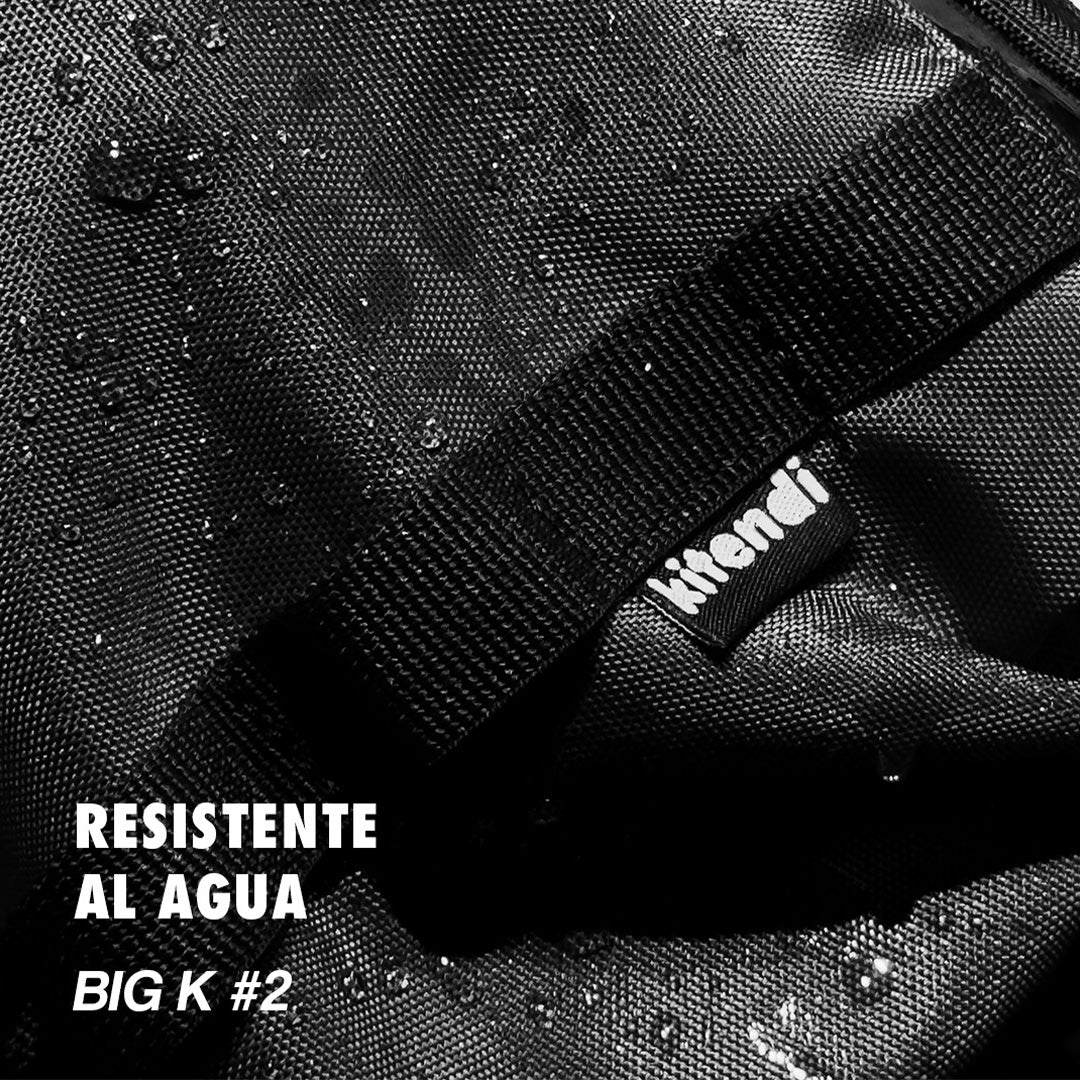 Cangurera de gran tamaño resistente al agua fabricada en nylon, con cierres sellados especiales y forro interno para soportar cualquier lluvia.