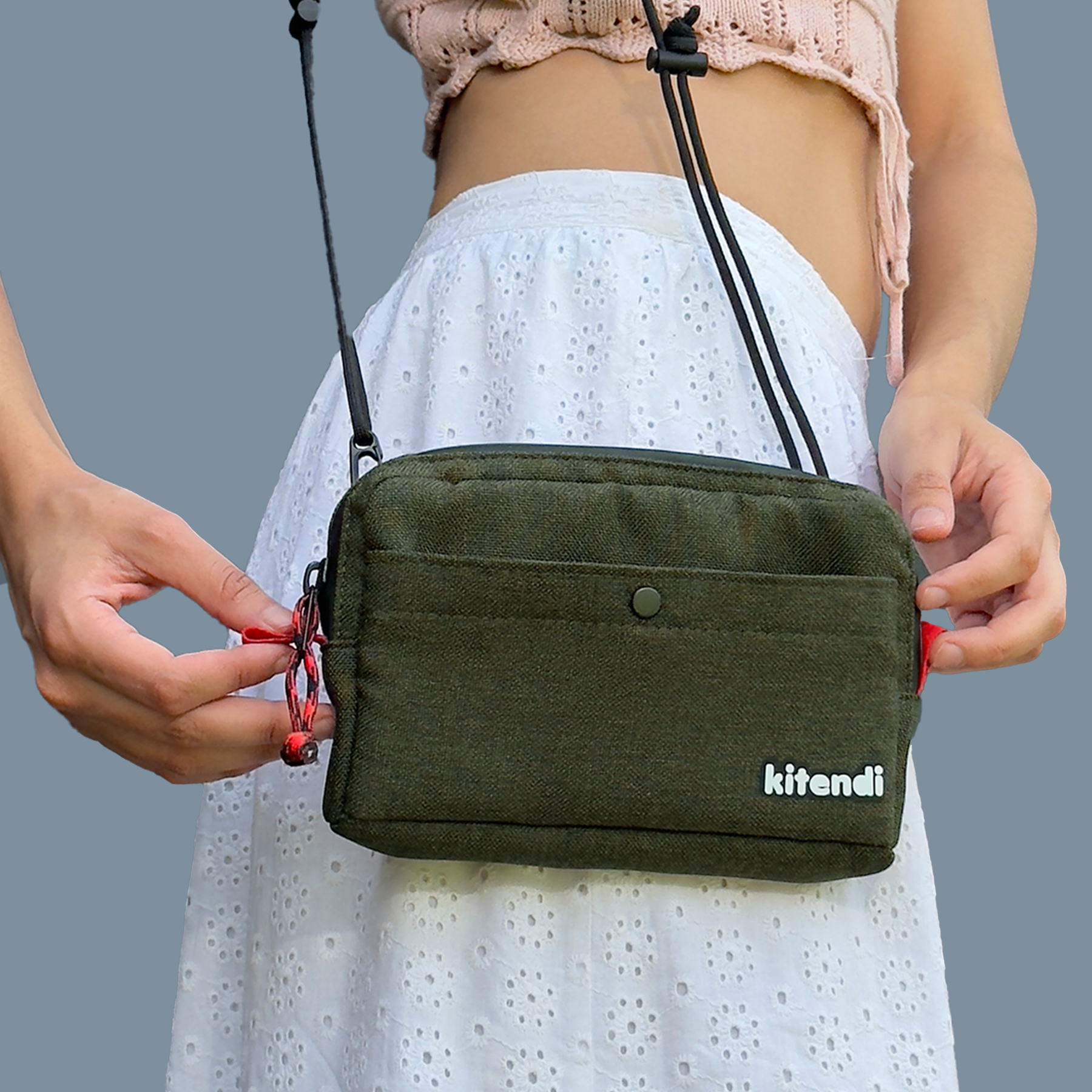 Con cierres sellados impermeables y hombrera ajustable que puedes desprender para convertir tu sidebag en una cartera.